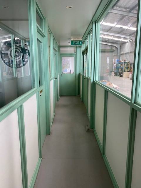 All abilities toilet, separate second toilet, office/lounge with split system, brew room, two fully enclosed offices, one open sided office, alarm system, LED industrial lights, rear access down each side of shed, Safe