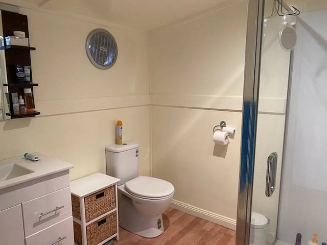 Living quarters - Bathroom with toilet and shower, upstairs bedroom/lounge with split system