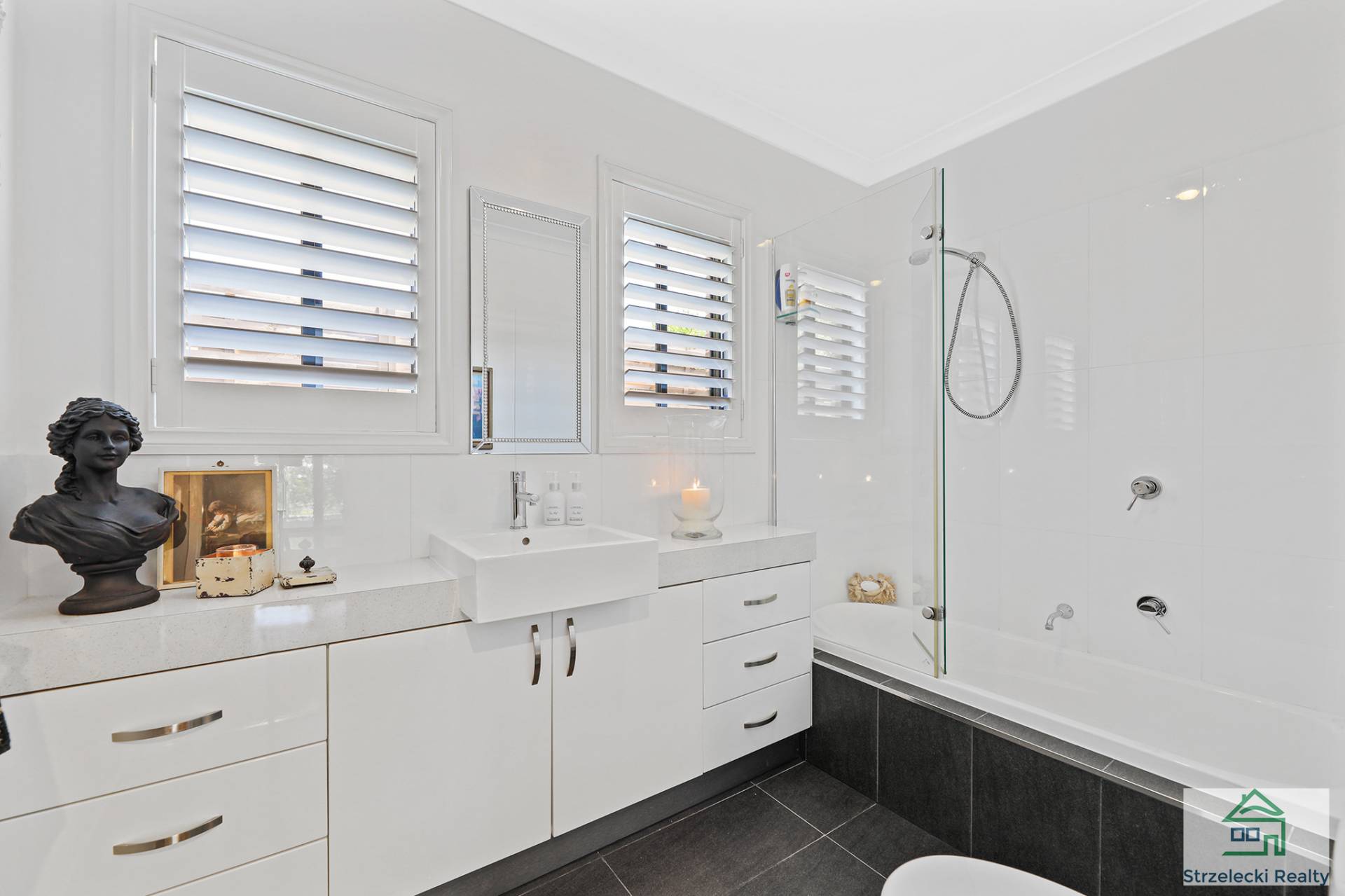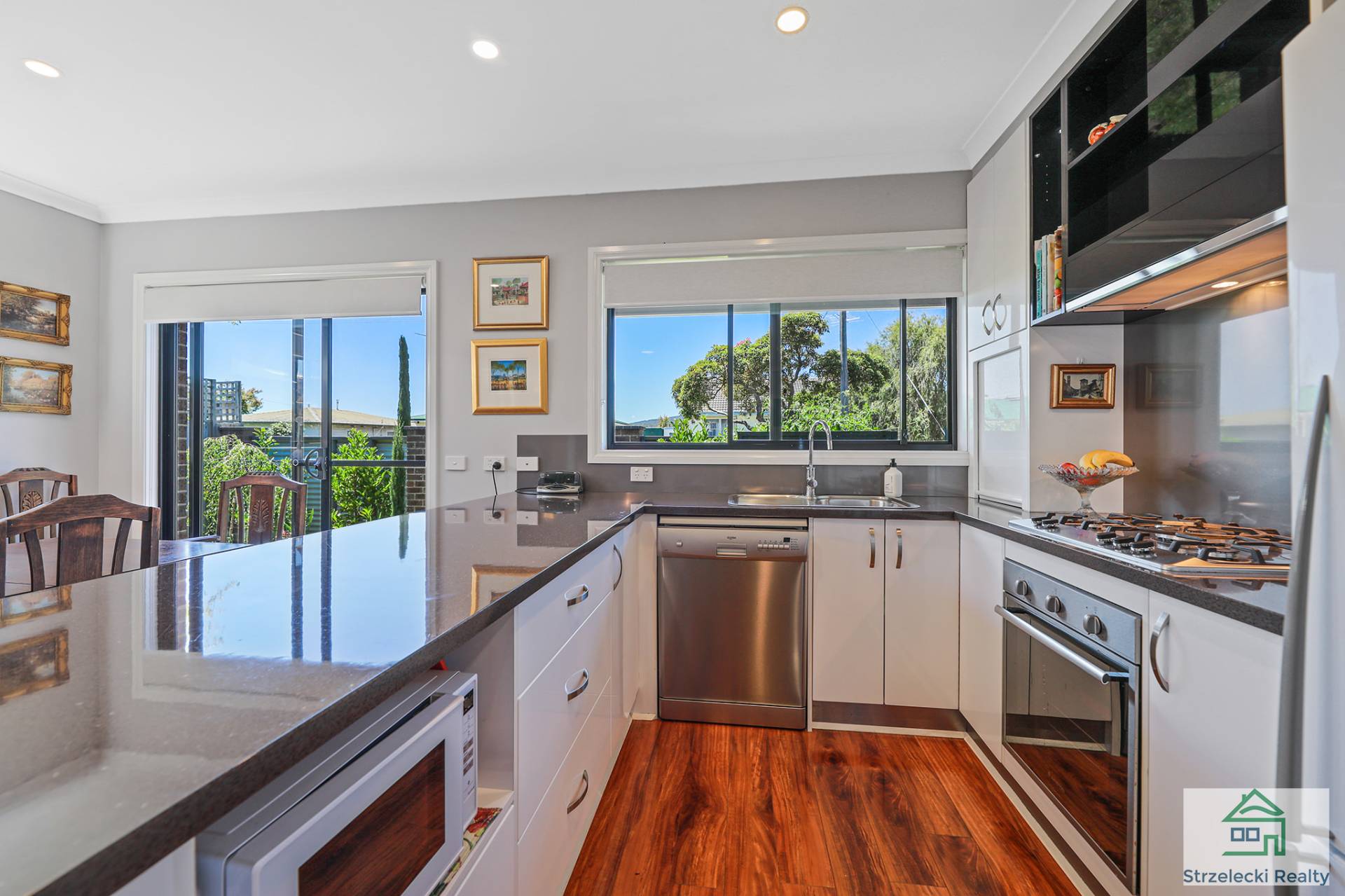 Other features include quality fixtures and high-end finishes, central gas heating, split system located in the living and dining, and a single car garage with internal access.