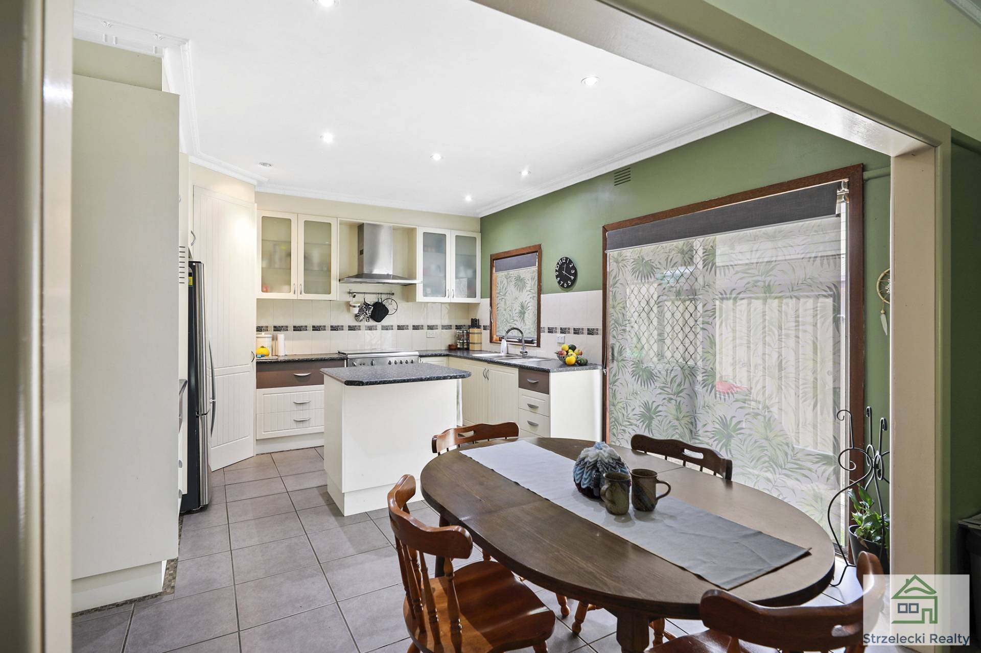 This modern classic property boasts multiple bright and spacious areas with high ceilings and art deco features throughout. While an open plan kitchen with freestanding gas oven is complemented by a bright dining and living area, providing everything you need for any festivity. The large separate sitting room is complete with wood fireplace. Gas ducted heating throughout, so the family will be toasty over winter, whilst a 1.5kw solar system supports your electricity costs.