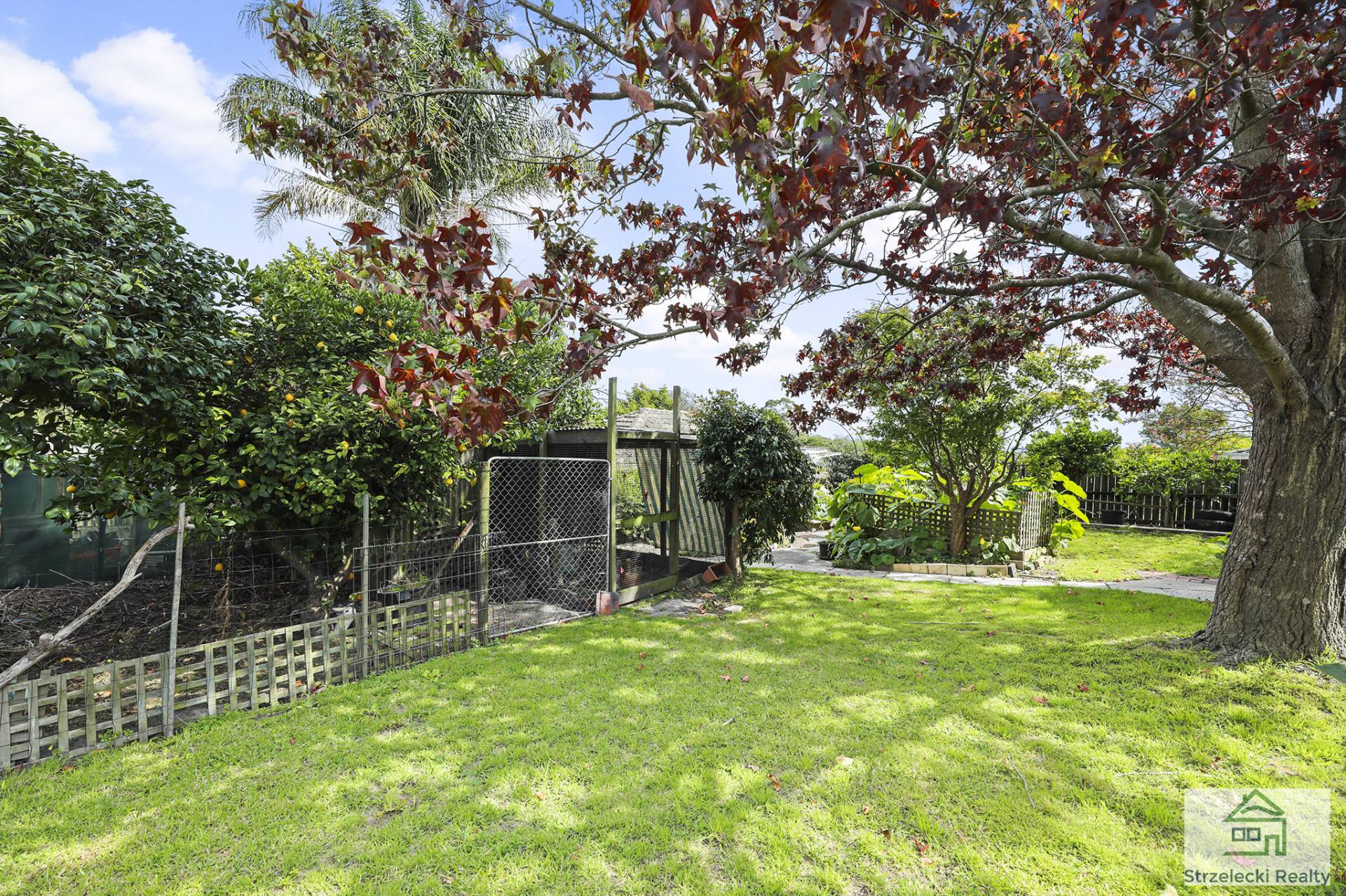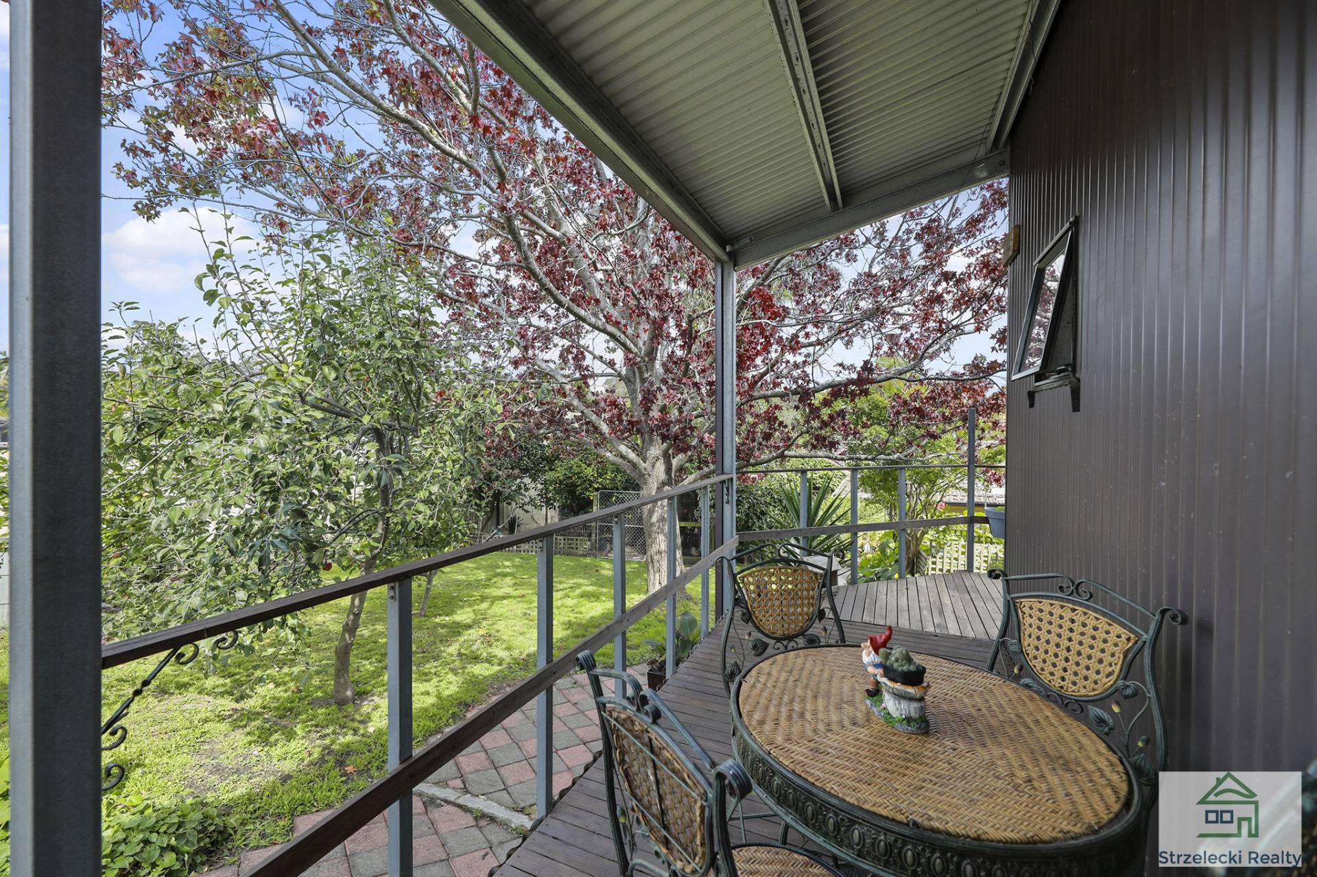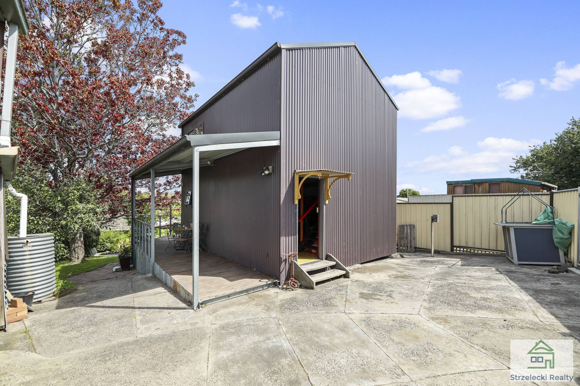 The rear of the block hosts a double storey studio and workshop, with spectacular views of the Baw Baw Mountains and a deck wrapped around one side. Rear access to studio and back of yard via a laneway, with large shedding and double carport. Enjoy a soothing cuppa in the leafy garden with fruit trees, vines, chook sheds and veggie gardens.