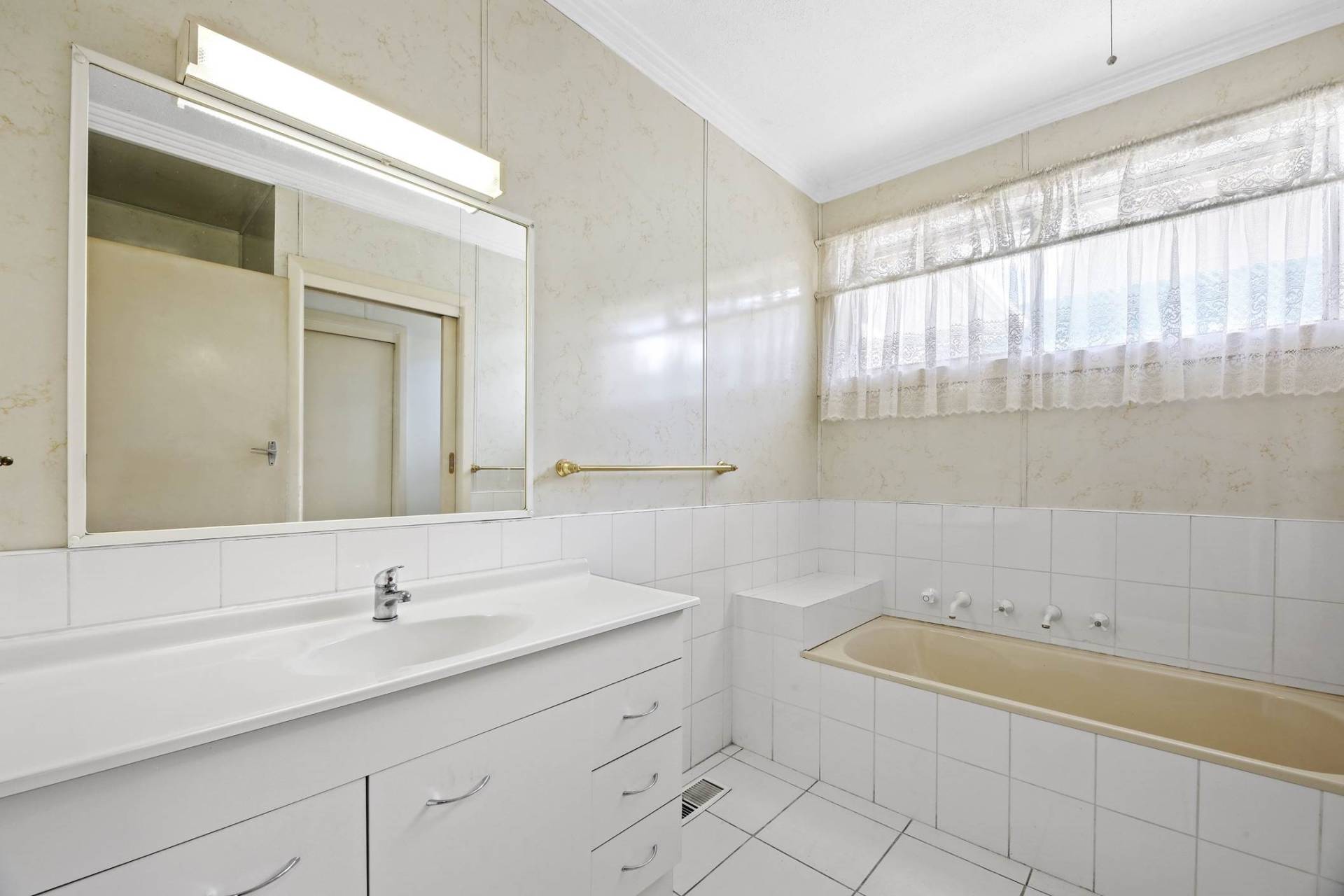 - Large central bathroom with bath