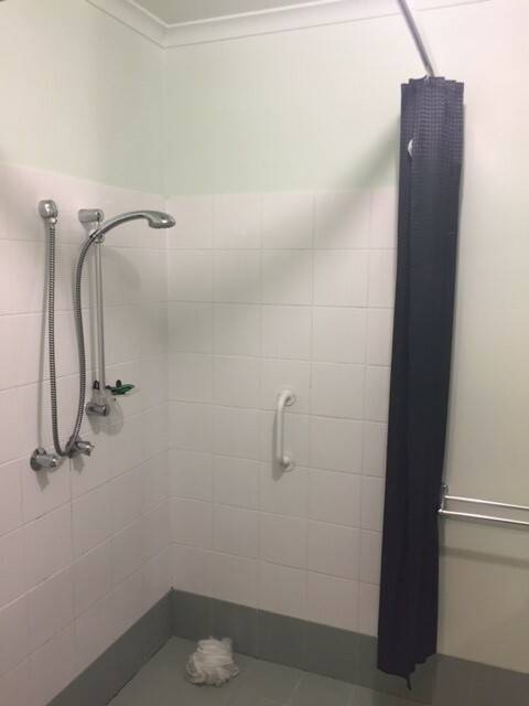 Bathroom has a walk in shower, basin and toilet