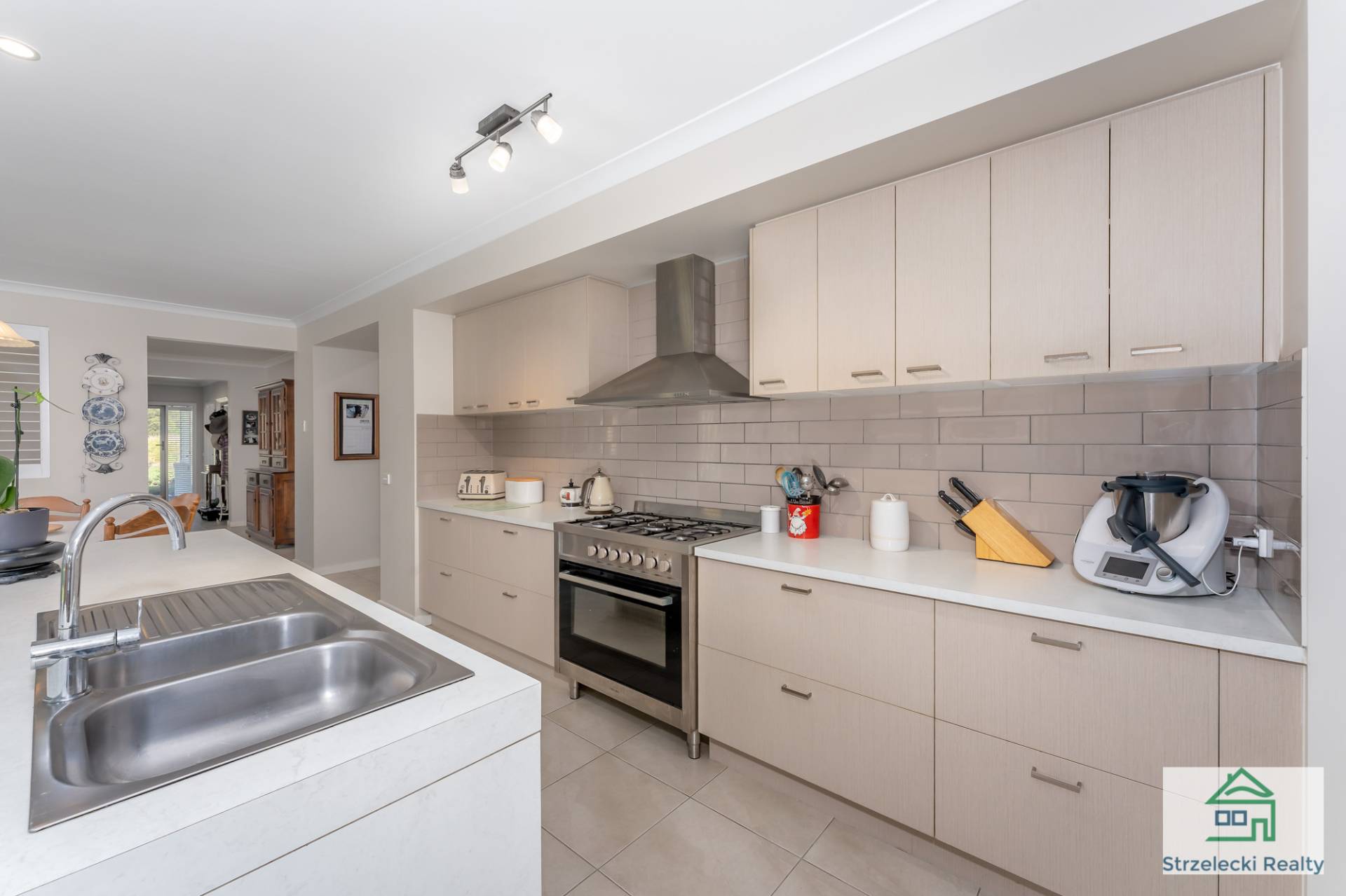 If your universe revolves around good food or school holiday cooking with your kids, this is the perfect platform for food preparation and fun times! Generous island bench, with dishwasher and power points on one end. 900mm stainless steel oven and large pot drawers. Sleek and modern subway tiles on the splashback complete the fashionable appearance. A large walk in pantry big enough to store a freezer completes this dream kitchen filled with every amenity essential for daily cooking, not forgetting ample power points.