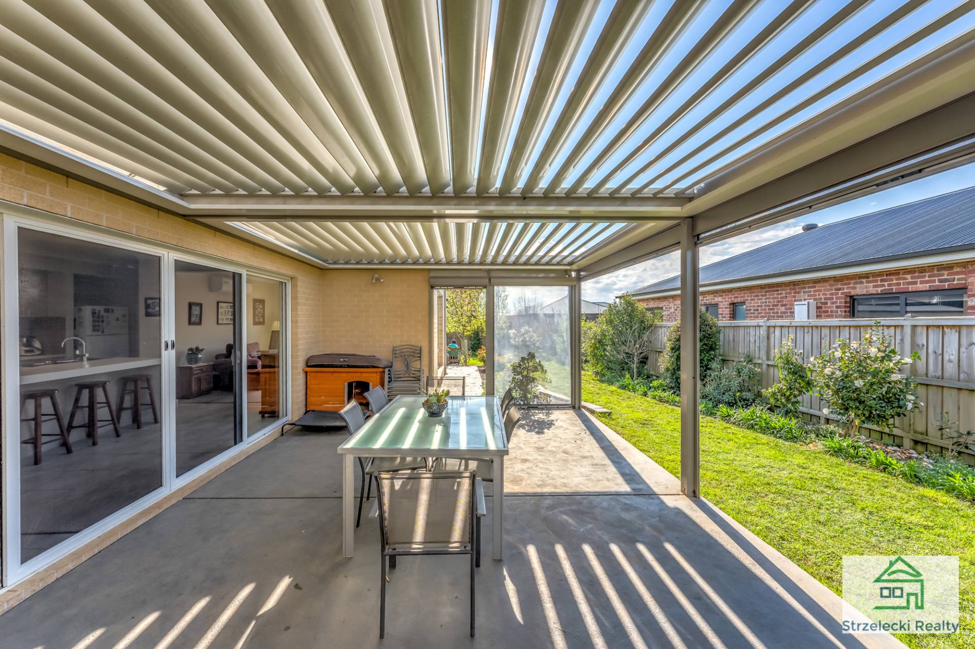 Step out into your new entertaining area, sure to impress your friends. A top of the line Louvretec roof with adjustable louvres means you won’t have the weather dampen the party or have the sun chase you inside. With the additional café blinds this area is useable all year round to enjoy.