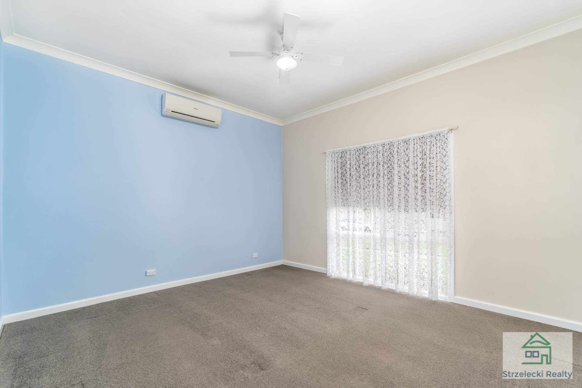 -          Large first and second bedrooms including their own split systems and ceiling fans, third bedroom including a ceiling fan.