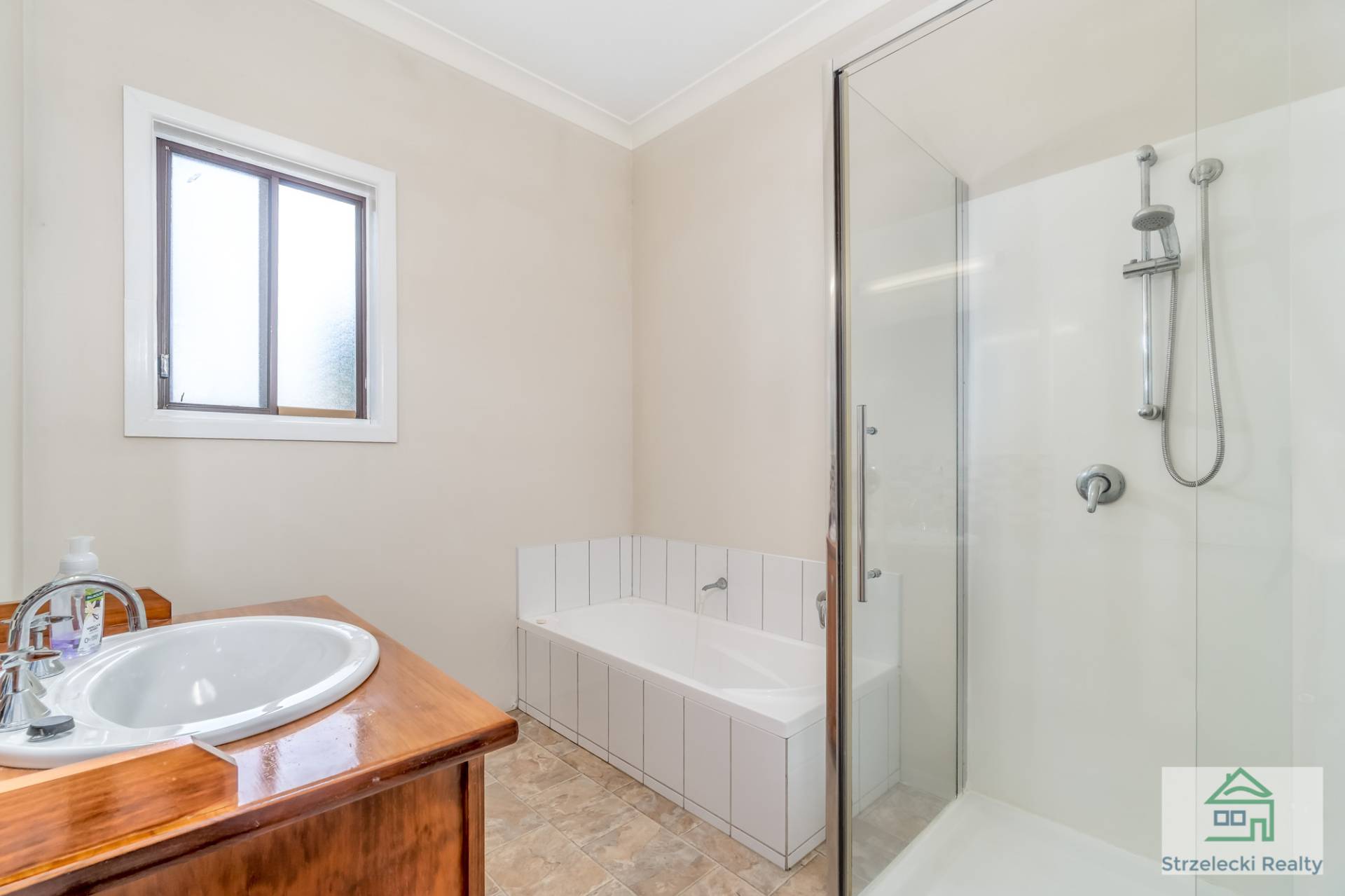 -          Bathroom inclusive of a single vanity, separate shower, bath and toilet.