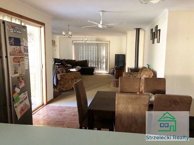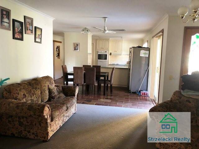Features include: extra large living area with gas log fire and small air conditioner unit, bright kitchen with electric appliances and breakfast bar that backs onto the dining area, all three bedrooms have built in robes and the master has direct access to the bathroom, separate toilet, large laundry with built in cupboards. Externally you will find a fully enclosed yard, large solid garage with single door access but plenty of bench space inside, other small sheds and still a patch of grass for the kids. Applications required prior to inspections.