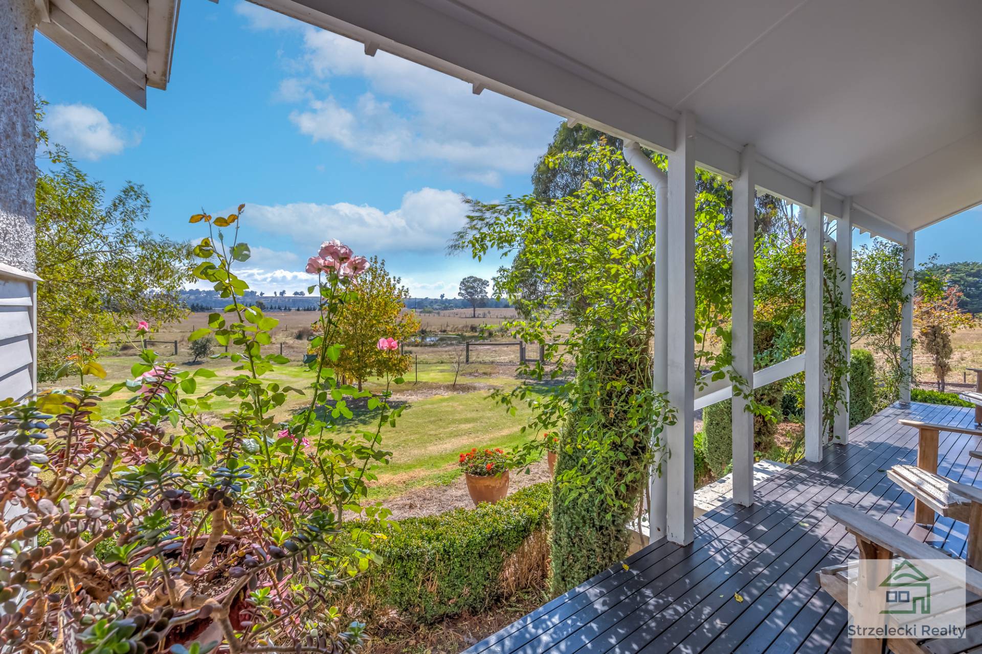 On entering the drive way you cannot help but pause to take in the sight of this well presented home that sits at the rear and centre of the property with an impressive rural outlook. The façade & gardens are impressive to say the least, as are the well-kept and well fenced paddocks.