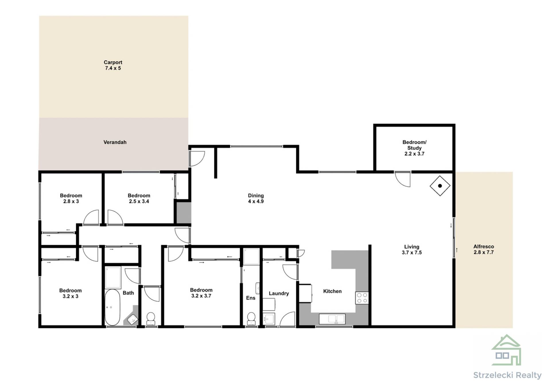 One of the key features of this property is the substantial living area with an open plan format with an adjoining study room or possibly 5th bedroom if needed. There’s a rear patio as well, the perfect place to cook a bbq and keep on eye on the kids playing.