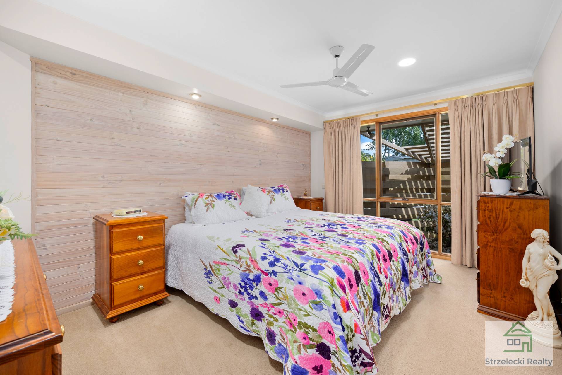 You’ll find plentiful drawer storage in the kitchen, a gas stove top and electric oven with a lovely window view overlooking the established gardens while preparing meals. Step out into the alfresco area via sliding doors and you will find the perfect place to sit and have your morning tea. The fully fenced yard consists of paved outdoor paths, a bbq area and even a place to house your caravan, boat or trailer.