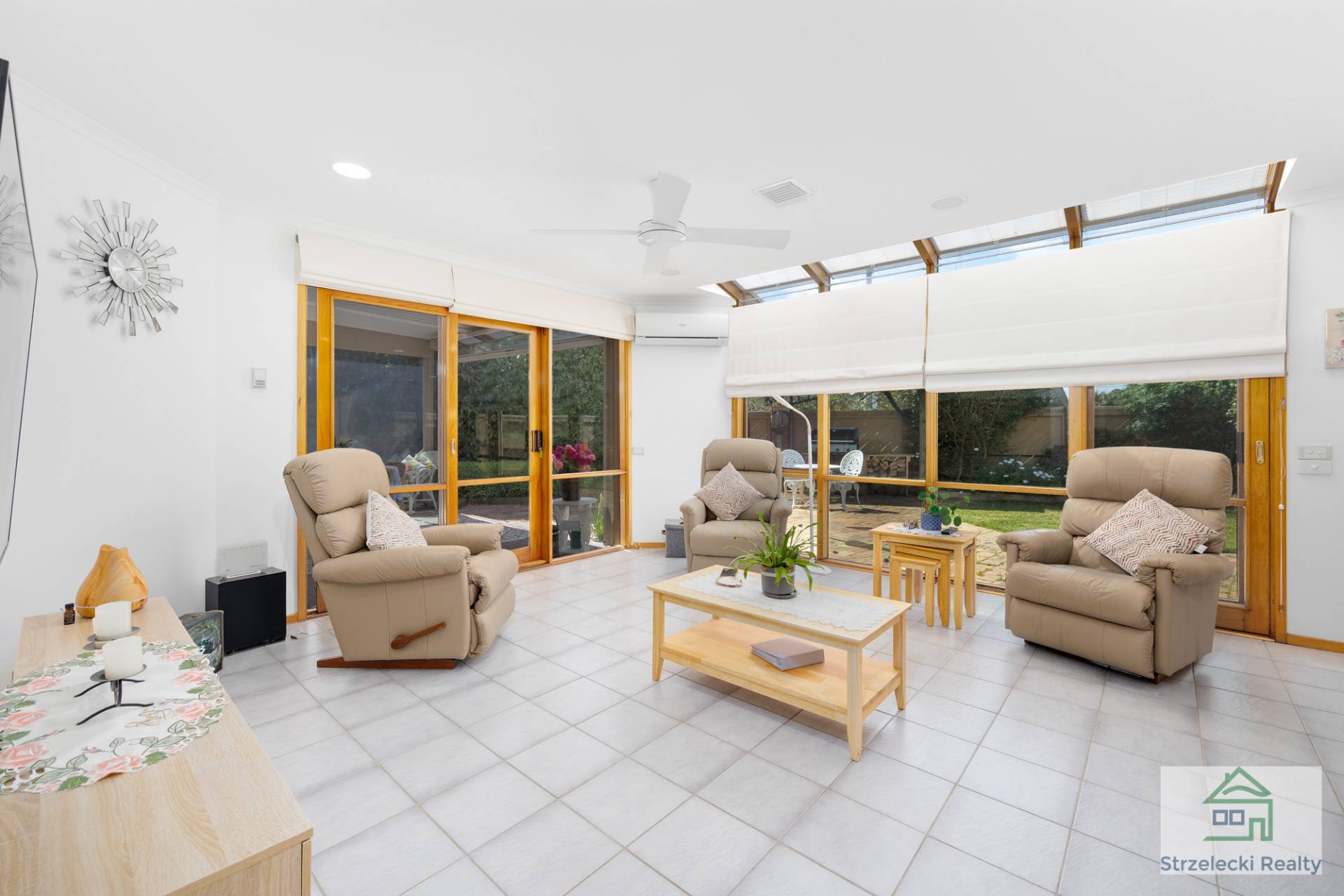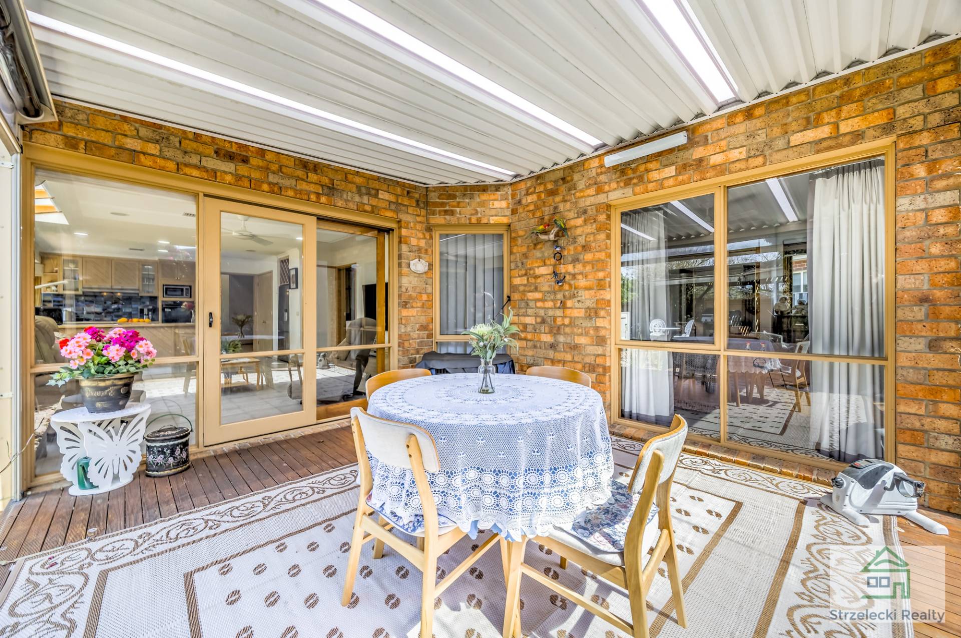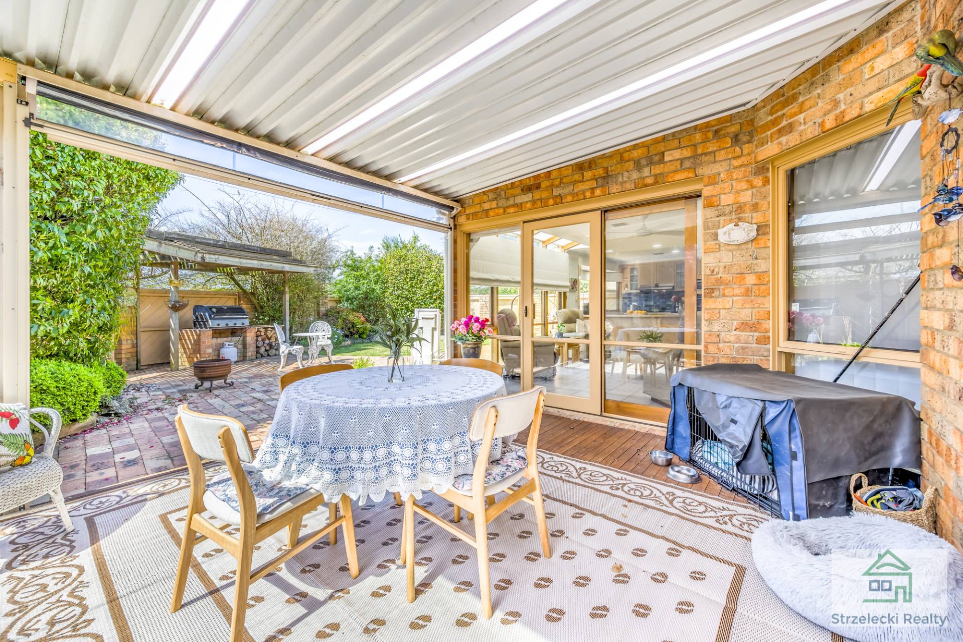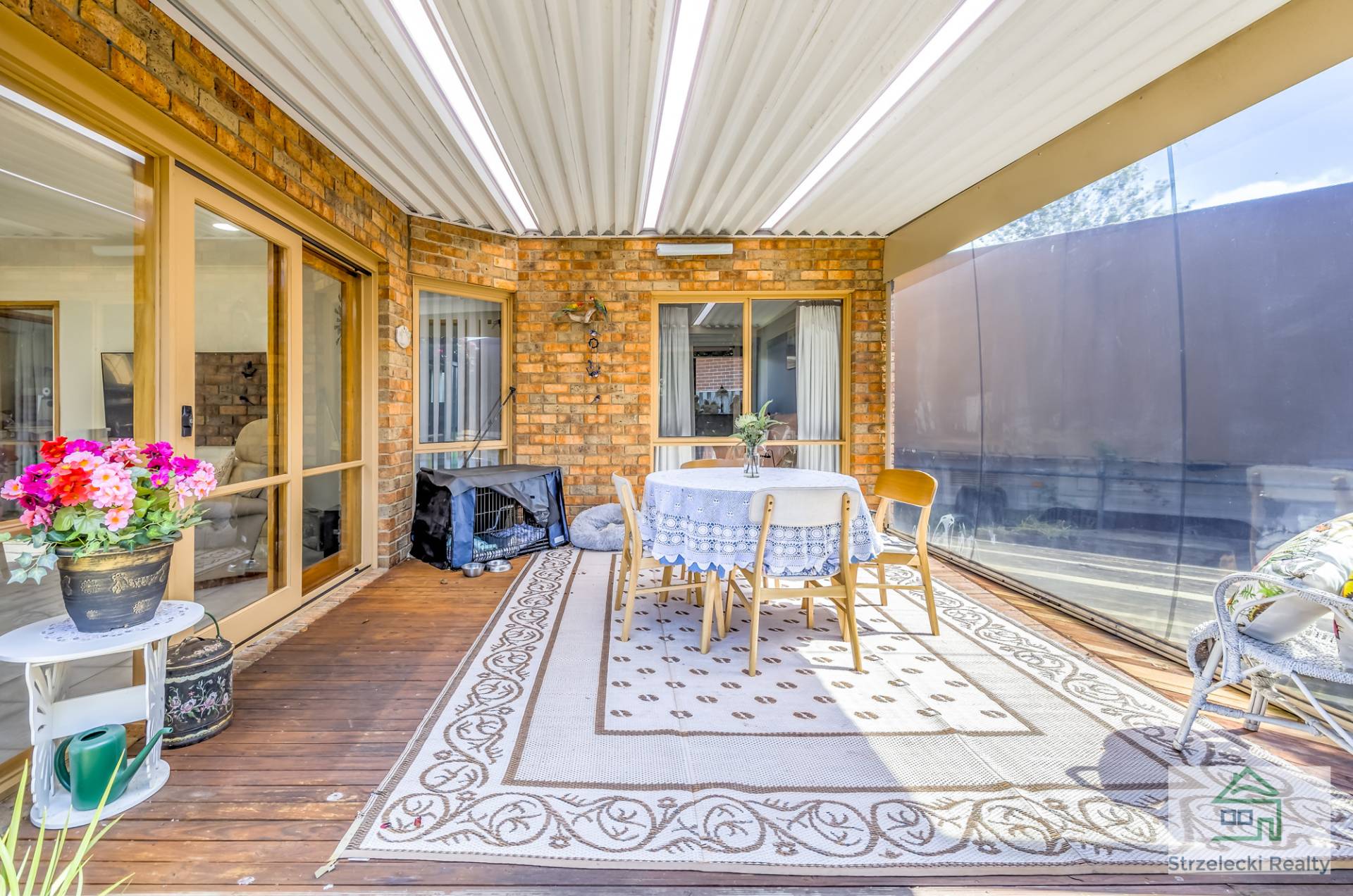 ·    Alfresco with timber flooring and café patio blinds
