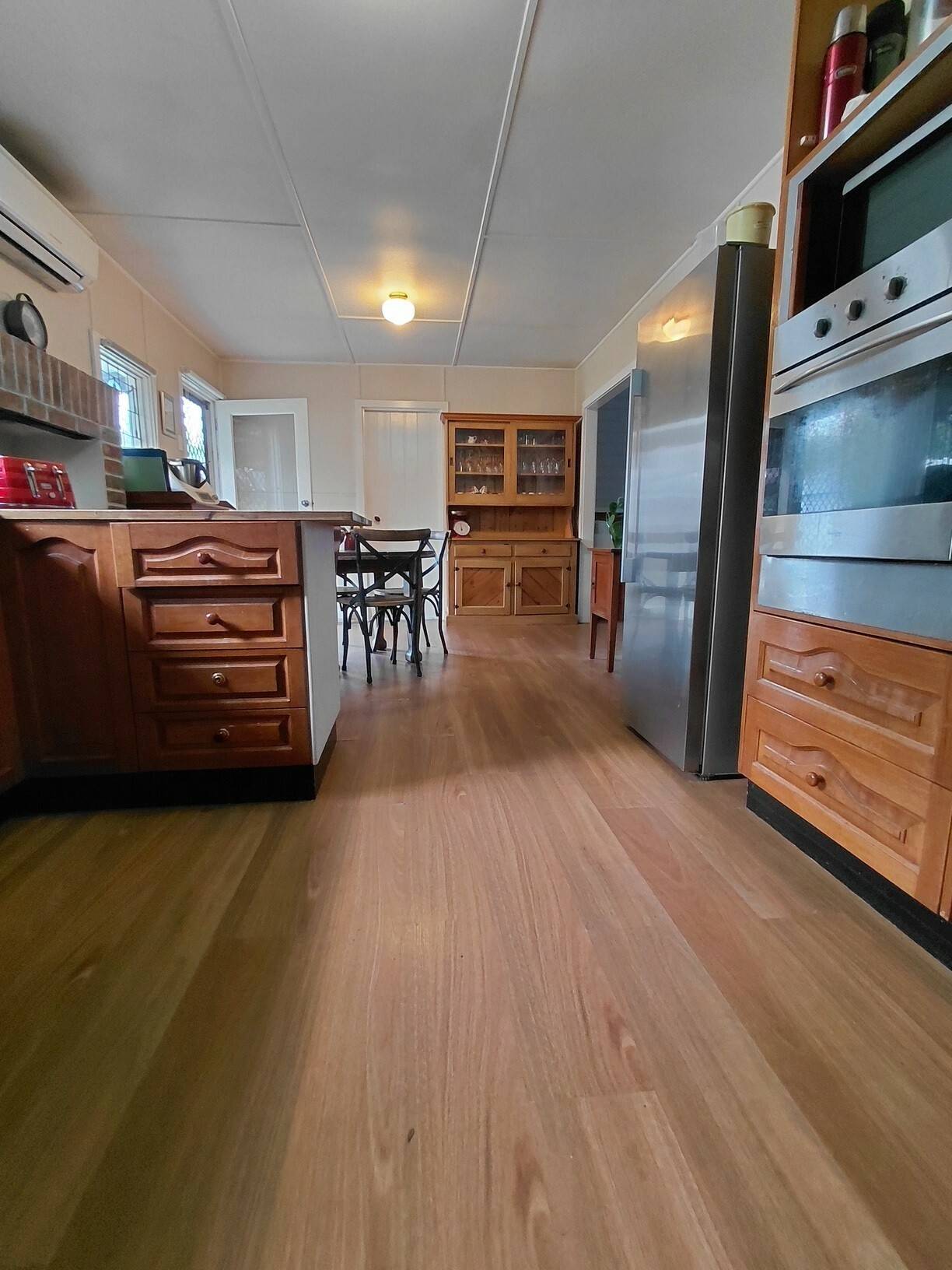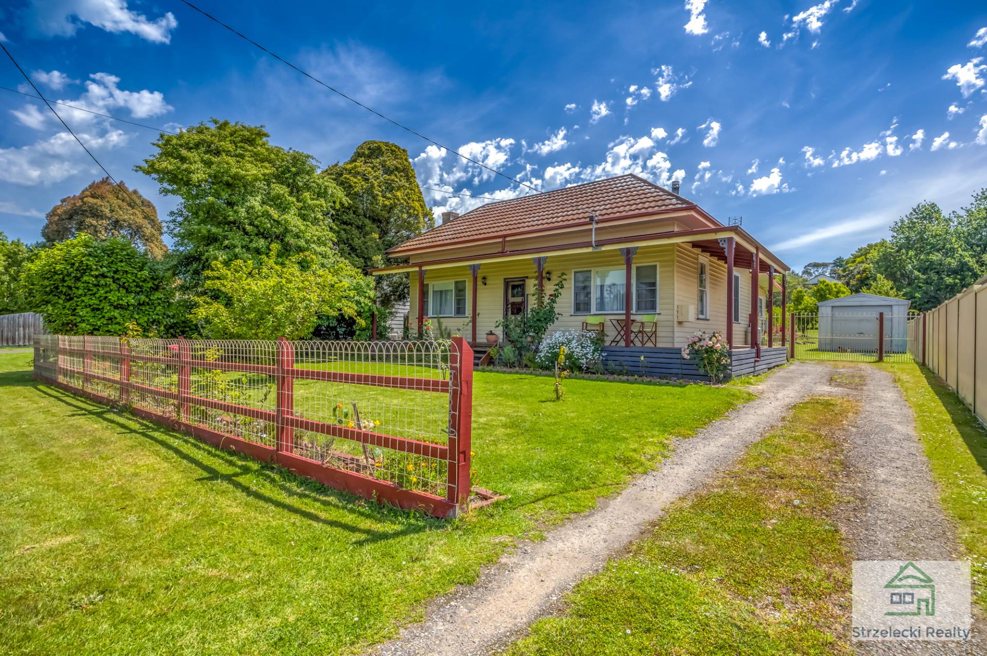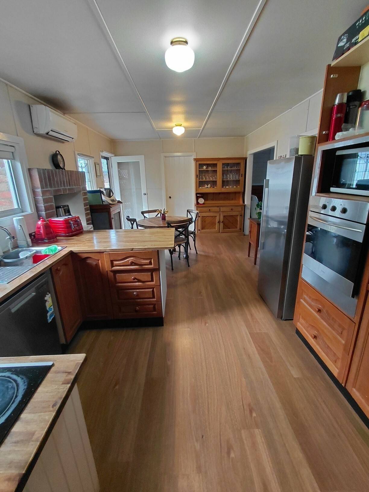 This property will pull at your heart strings with its true country home feel. Three bedrooms all with built in robes and ceiling fans, extra high ceilings and ceiling roses throughout, 2 x split systems plus slow combustion wood heater. Ornate open fire places, two toilets, deep bath in main bathroom, electric cooking and LPG gas instant hot water.