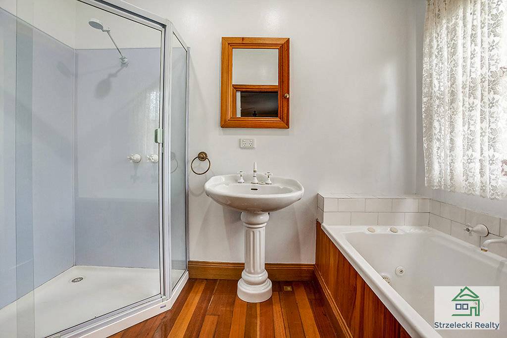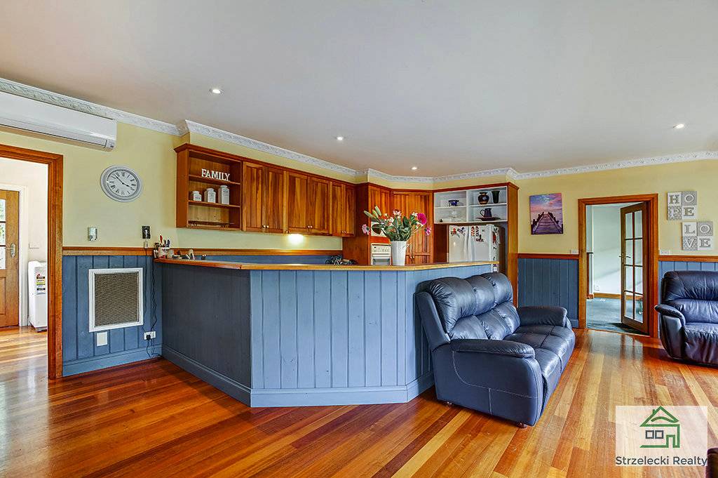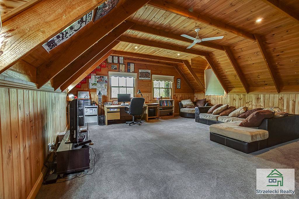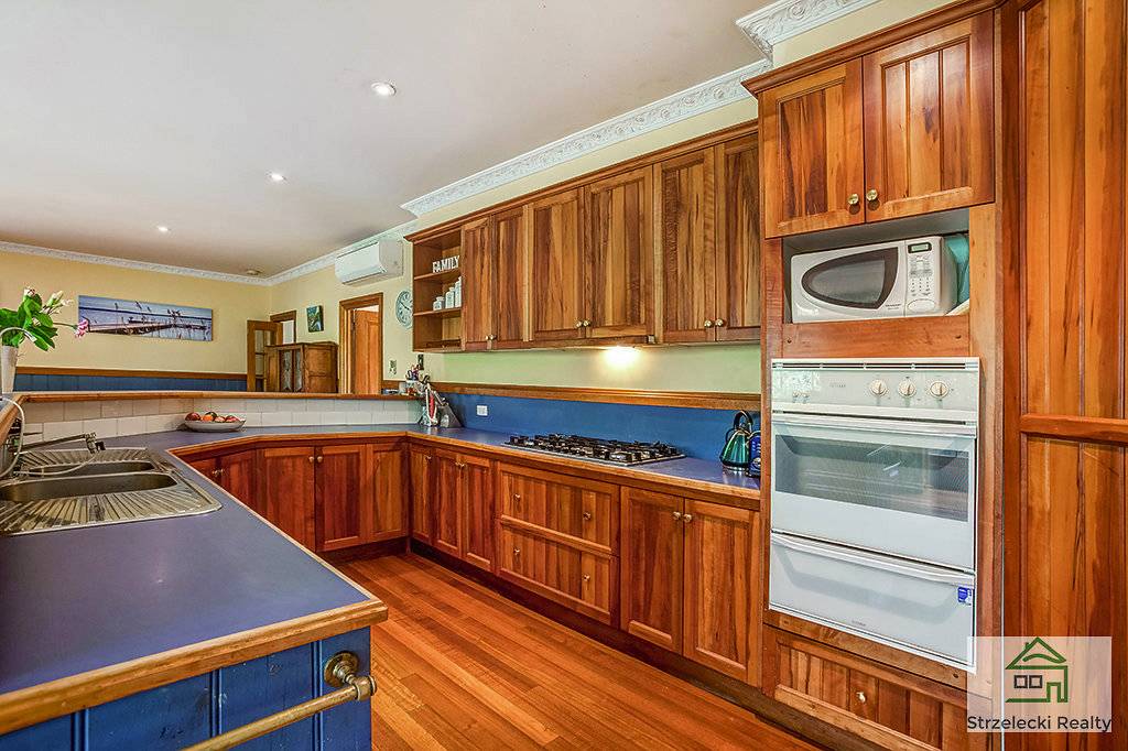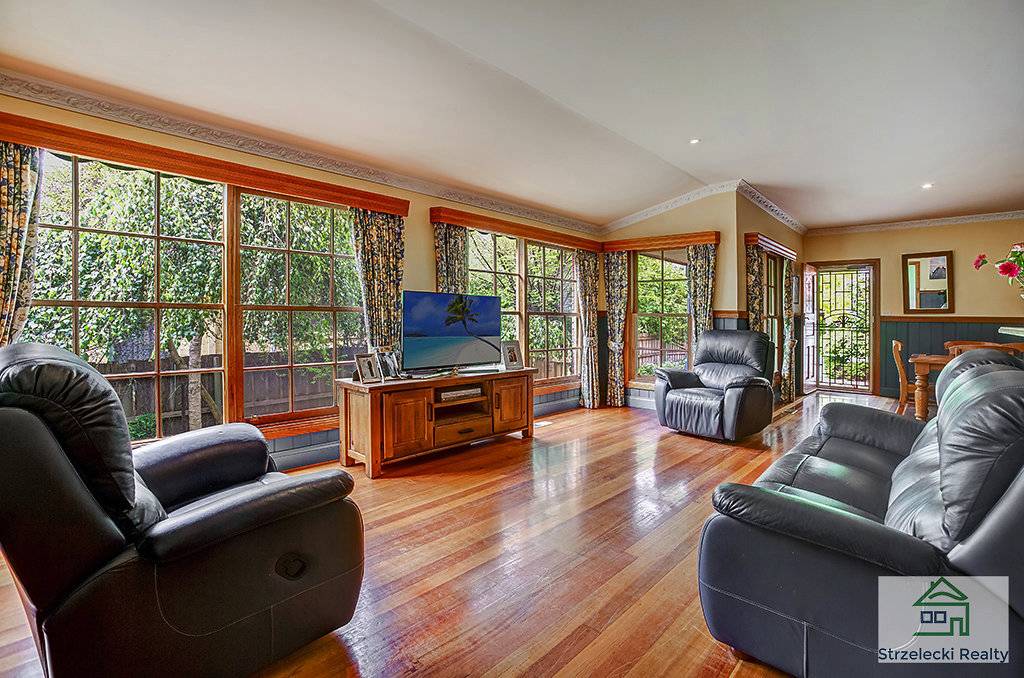 Downstairs enjoy the polished hardwood timber floorboards flowing throughout the open plan kitchen, dining and one of the living areas. The parents retreat is complete with an ensuite that has a spa bath and large corner shower. A walk in robe as well as their own living area or study with gas log heater completes the retreat. The kitchen is fitted with a dishwasher, gas hotplates, electric oven and a large fridge alcove to suit the modern appliance. There is a separate toilet downstairs located in the fully fitted out laundry.