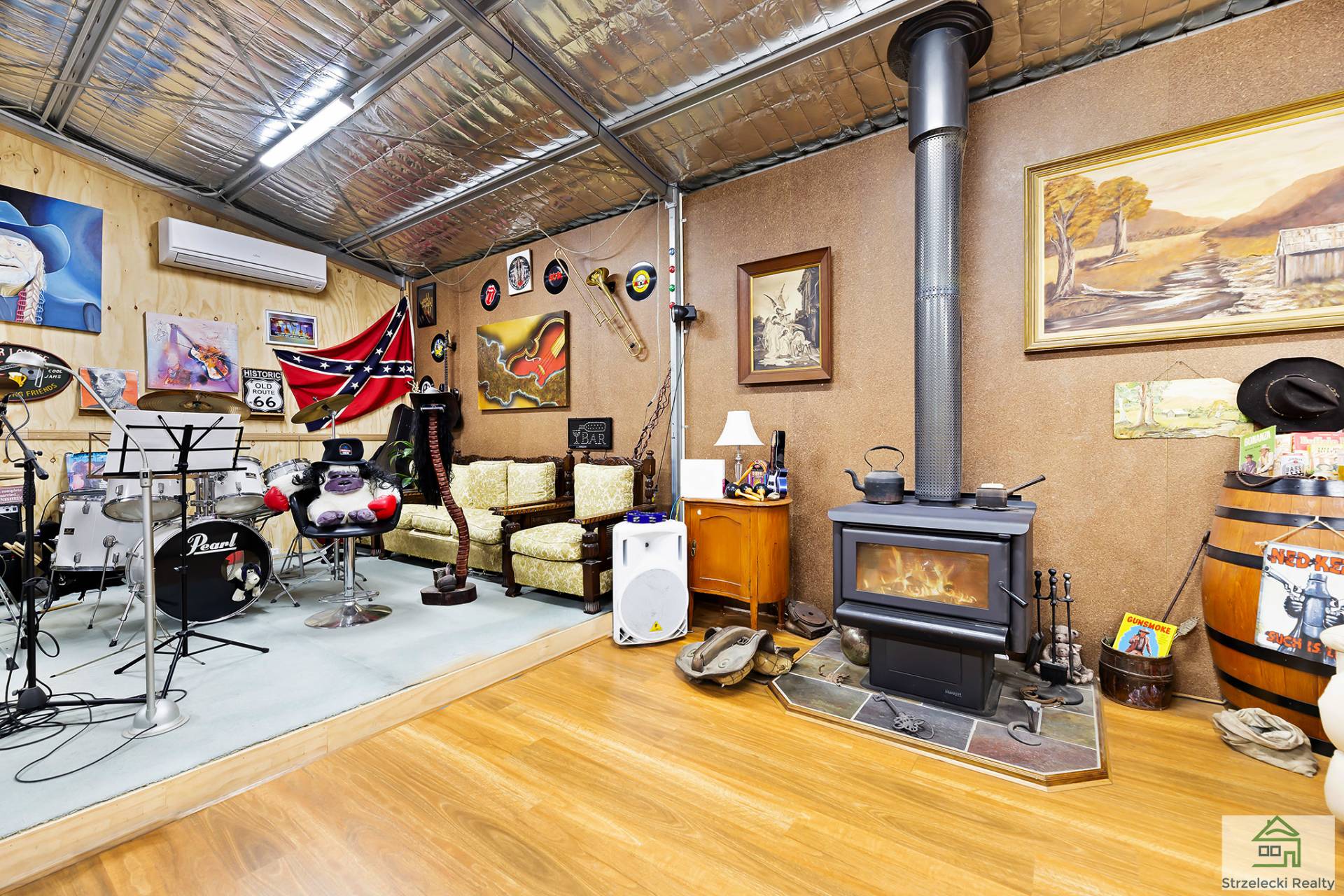 How about your own studio with enough room to hold yoga classes for 20 students, or an auditorium with enough room to have a full orchestra set up on the stage?  This property has many appealing features you won't know where to look.  Set on approximately 1 acre and surrounded by bush gardens, water features, fruit trees and vegetable patches it is very private and a short 5 minute drive from the township of Yarragon. The residential home features three bedrooms, large living area with a wood heater, extra large bathroom and a partially updated kitchen. The separate studio is open plan with a kitchenette, built in bar, stage area, wood heater, acoustically designed and large veranda area. Situated next to the studio you will find an ensuite fitted with an environmental toilet, shower and laundry. The large garage at the front of the property has a built in studio, a separate fully lined room, wood heating and storage area.  There is plenty additional shedding dotted throughout that are used for storing wood, garden equipment and tools, plus a chicken coop. Ample tanks for water. Lovely views of Mt Baw Baw and nestled at the foothills of Mt Worth. Get inspiration to work from home whilst in a private tranquil setting. Private inspections only.